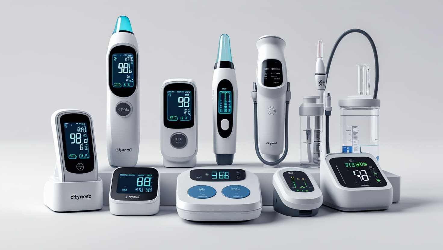 Blood pressure monitors, glucometers, oximeters, and thermometers for regular health check-ups at home.